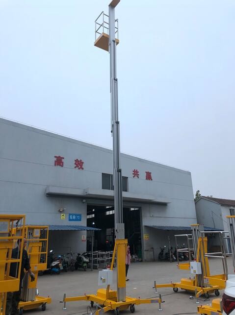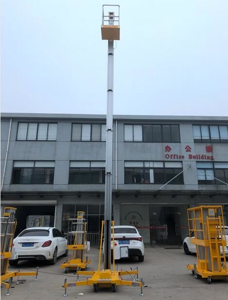 Single Aluminum Aerial Work Platforms has light structure and small size, it can also be made into AC power supply type, all these factors enable operator to use this aerial work platform outdoors.