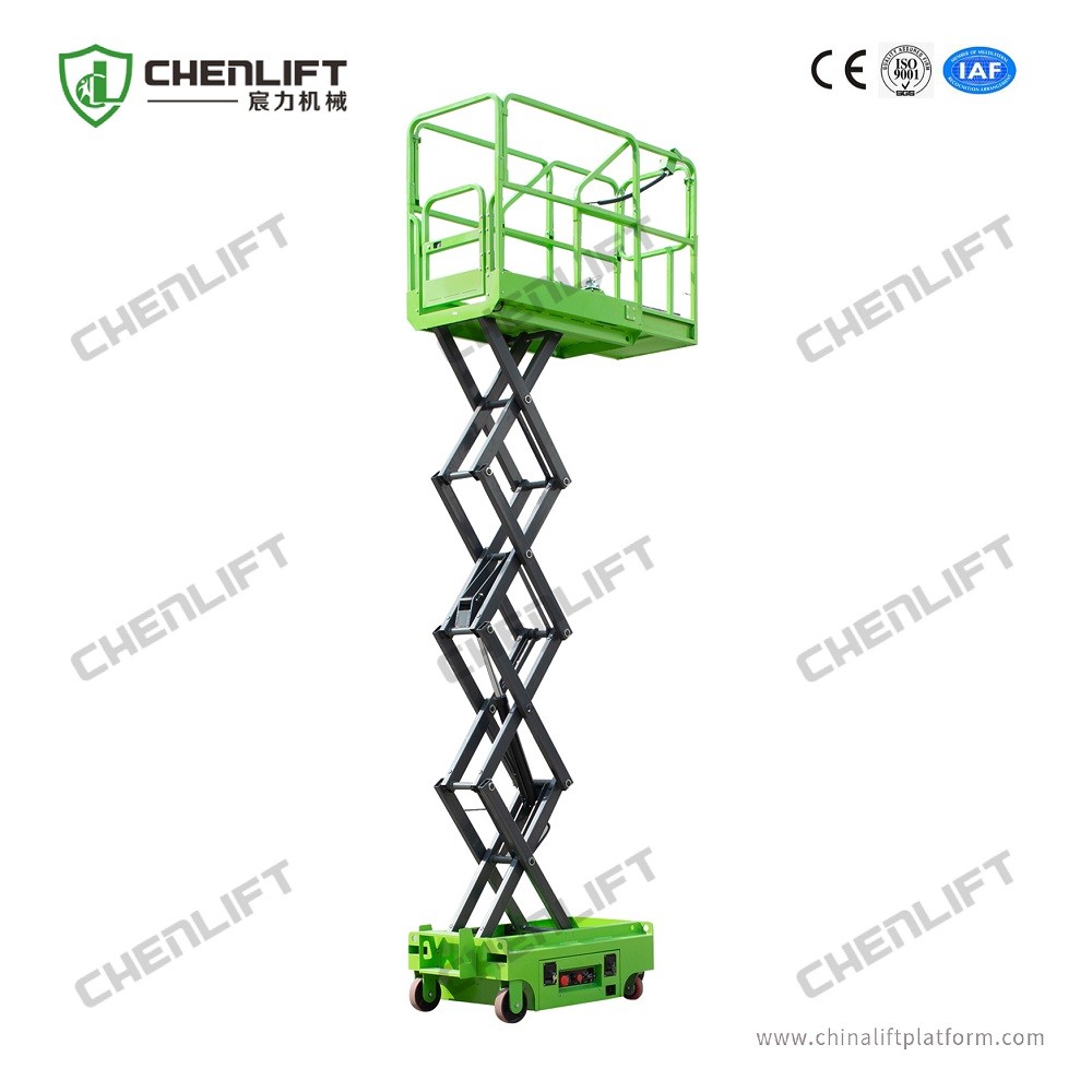 Mini Scissor Lift has compact design structure(without outrigger, so the preparation time will be less, and enhance the working efficiency) less weight(can push easily by manpower)