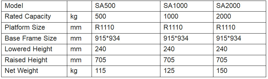 | Rated Capacity: | 2000kg | Platform Size: | R1110mm |