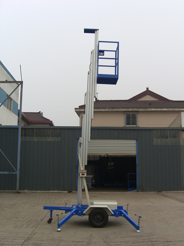 6 Meters Platform Height 130kg Loading Capacity Towing Single Mast Aerial Work Plaform For Long Distance Transportation