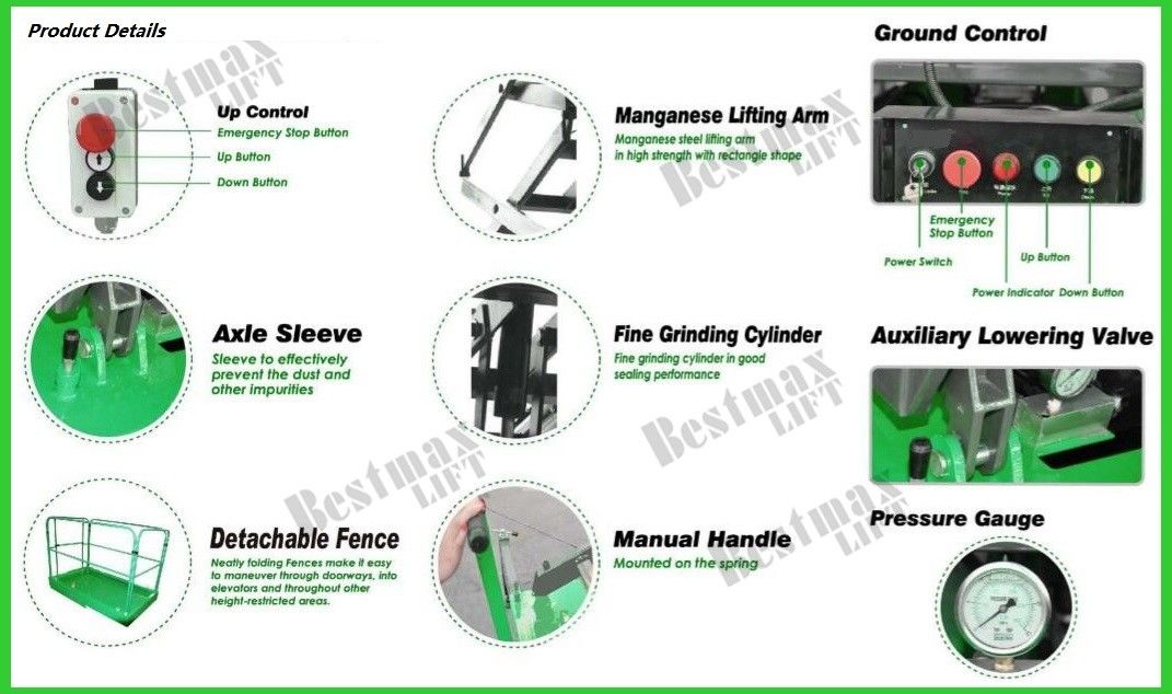 Extension Platform is always required to eqquip in the scissor lift by our customers, generally the platform can extend 0.8m on one side ( width side), as the extension platform is dagling, the loading capacity of it is less than the main platform which is 120Kg.