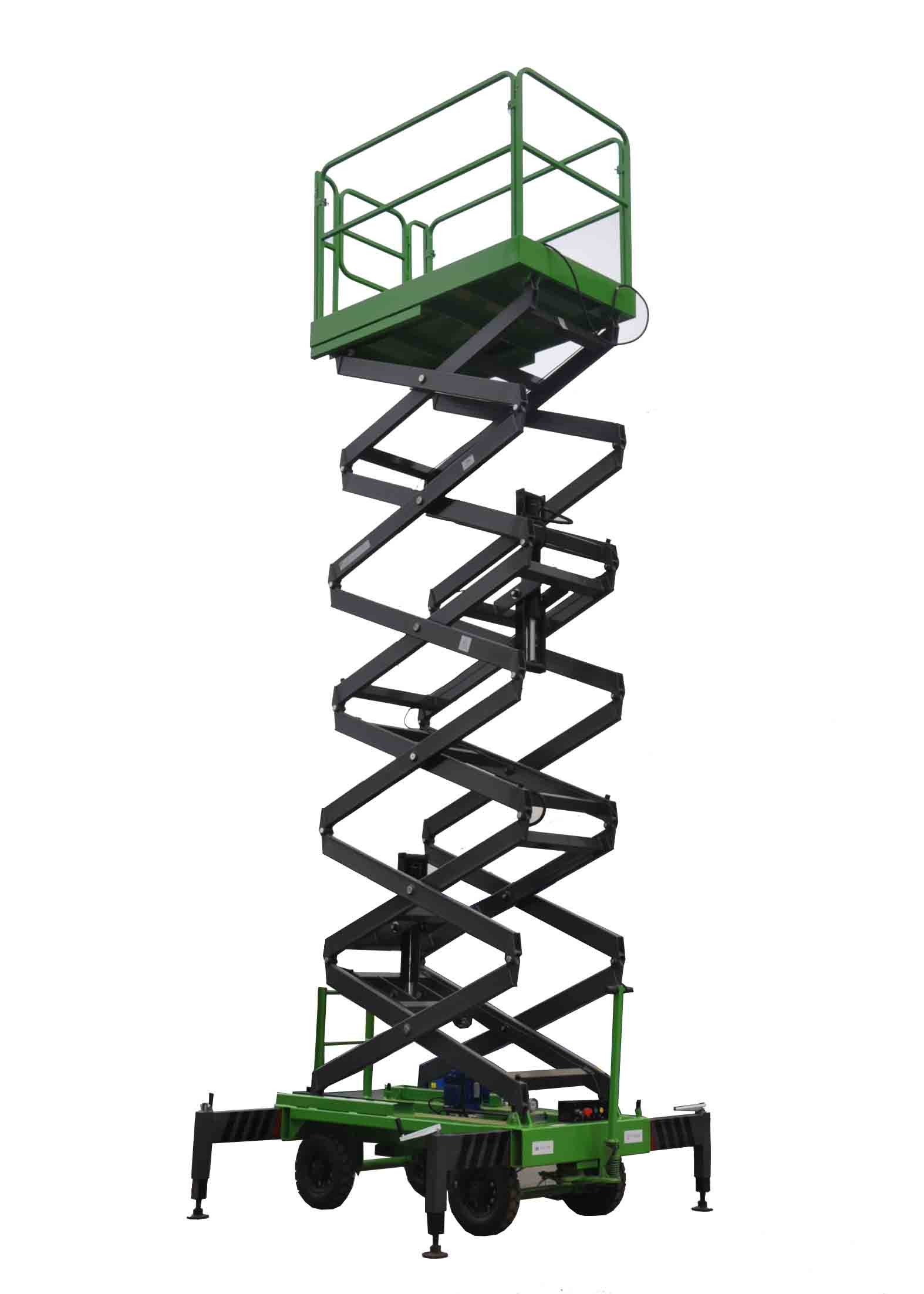The scissor structure enables reliable stability when the lifts rising up, the broad platform and the high loading capacity get the aerial working more efficient and more safely.