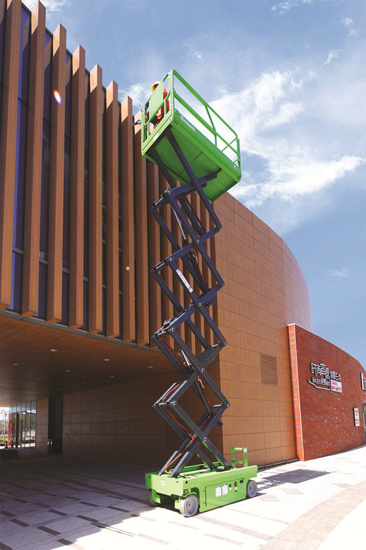 The moving of this Self-propelled Scissor Lift is driven by Hydraulic Motor and DC is the power to the lifting of this Self-Propelled Scissor Lift. This machine is quite popular among our customers, as it compares to the Fully Electrical Scissor Lift, the price is more competitive. As there is no need for the outriggers, so it can be used in the narrow space.
